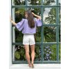 Top má delší zvonové rukávy, které jsou mírně nařasené.